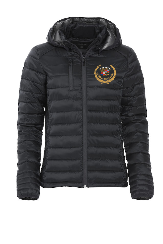 Modern lättvadderad jacka. Avtagbar huva och tre fickor med dragkedjor samt två innerfickor. Hörlursögla på insidan av halsöppningen.
