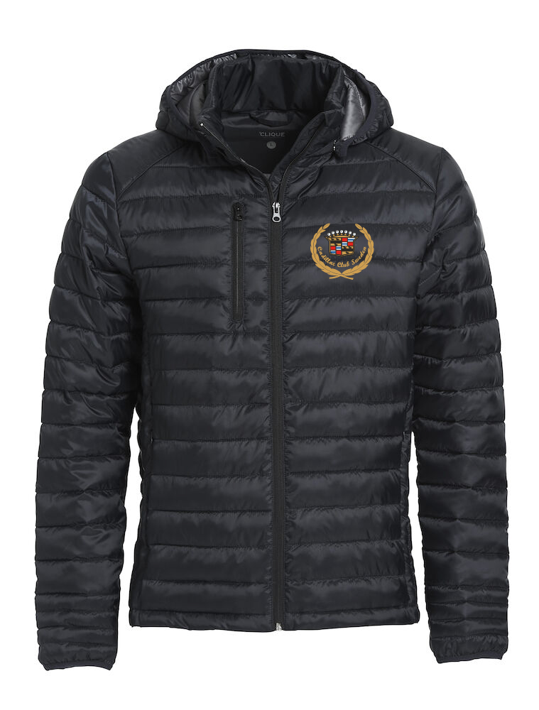 Modern lättvadderad jacka. Avtagbar huva och tre fickor med dragkedjor samt två innerfickor. Hörlursögla på insidan av halsöppningen.